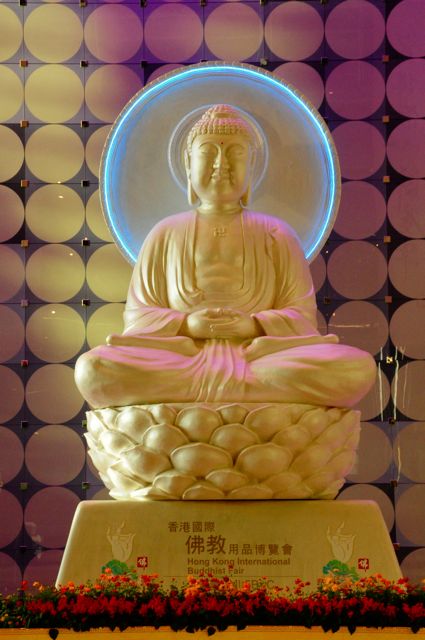 Inside the HKCEC. Buddhist Convention May 2011 with huge white Budddha at the main lobby.